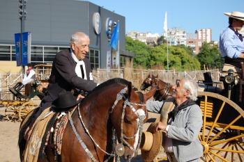y luciéndose con sus pilchas. También se les realizó homenajes a varias personalidades del Movimiento Tradicionalista: - al Soguero Luis Alberto Flores, que recibió un reconocimiento de Clarín Rural, de El Cardón y de uno de sus alumnos dilectos, Pablo Lozano, - a Don Alejandro Bustillo por la tarea que viene realizando desde tantos hace tantos años con carruajes y caballos (Clarín Rural y El Cardón), - a Don Benito Morales, un Tradicionalista Bragadense de 87 años que sigue luchando por las cosas nuestras y que aún desfila de a caballo (El Cardón), - y al Soguero Martín Gómez, quien también recibió reconocimientos de Clarín Rural y El Cardón. La Sociedad Rural Argentina entregó a cada uno de los participantes una medalla recordatoria por su colaboración. Para finalizar la tarde nos encontramos en el Stan de El Cardón - José María Cuenca con todos los amigos que hicieron posible esta jornada de Tradición -cada uno desde su aporte- para brindar por el éxito logrado. Qué se repita! |